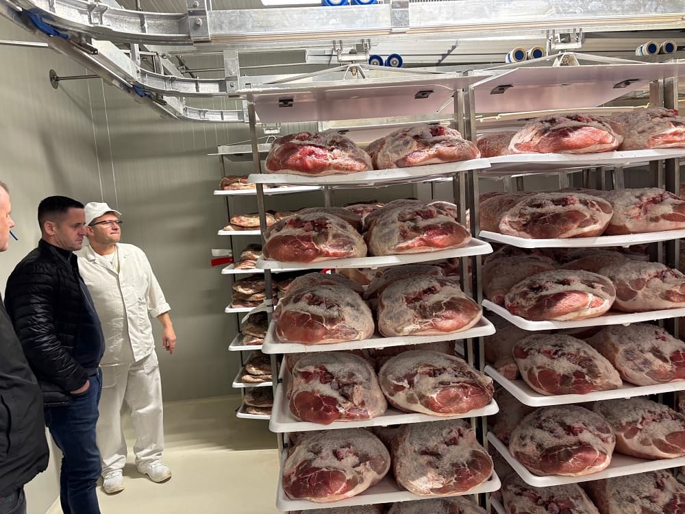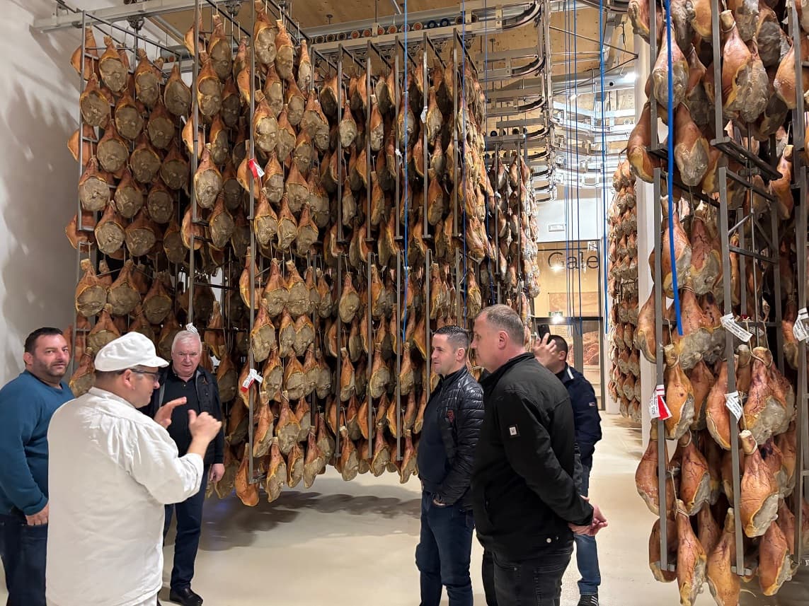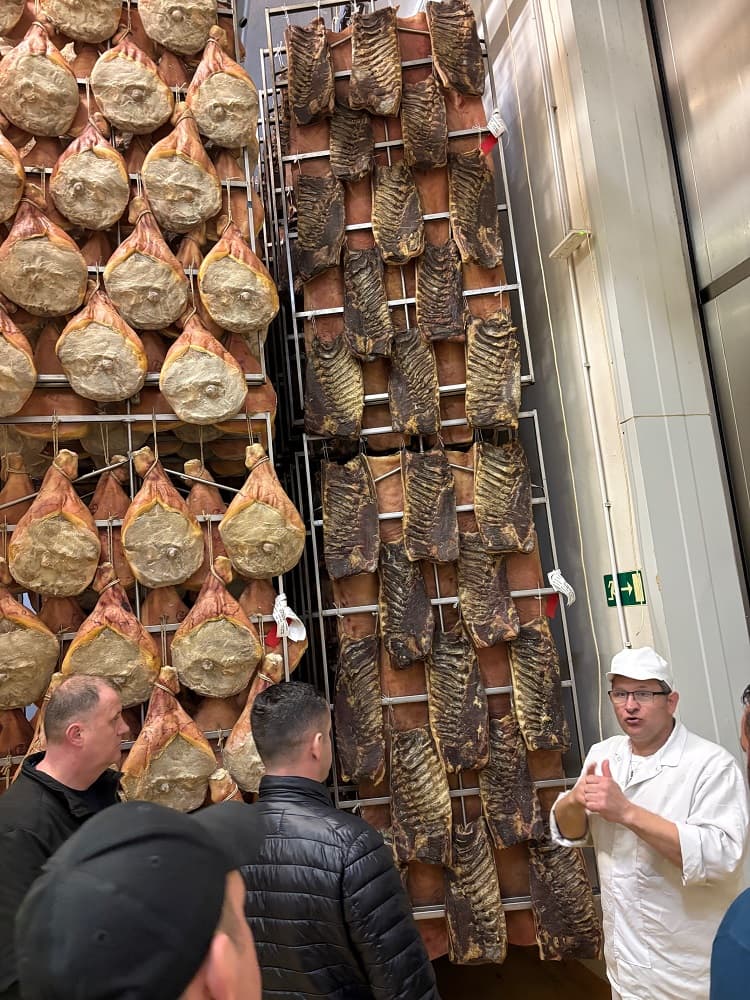 su članovi i suradnici Udruge Samoborska češnofka posjetili Pršutarnu Lokev i upoznali se s tehnologijom prerade i proizvodnje geografski zaštićenog Kraškog pršuta. Na tom području pet proizvođača pršuta ima europsku zaštitu i prisutni su se mogli uvjeriti u vrijednost hvaljene delicije. Nakon većeg proizvođača u mjestu Črniče u Vipavskoj dolini obiđeno je obiteljsko poljoprivredno gospodarstvo Cigoj koji su zaokružili cijelu proizvodnju od proizvodnje vlastite stočne hrane, mesne sirovine u kojoj se posebno se ističe svinjska pasmina mangulica, do kontroliranog procesa zrenja koji je najmanje 24 mjeseci. Na svom gospodarstvu plasiraju 75 posto proizvodnje a želja im je doći do 100 %.